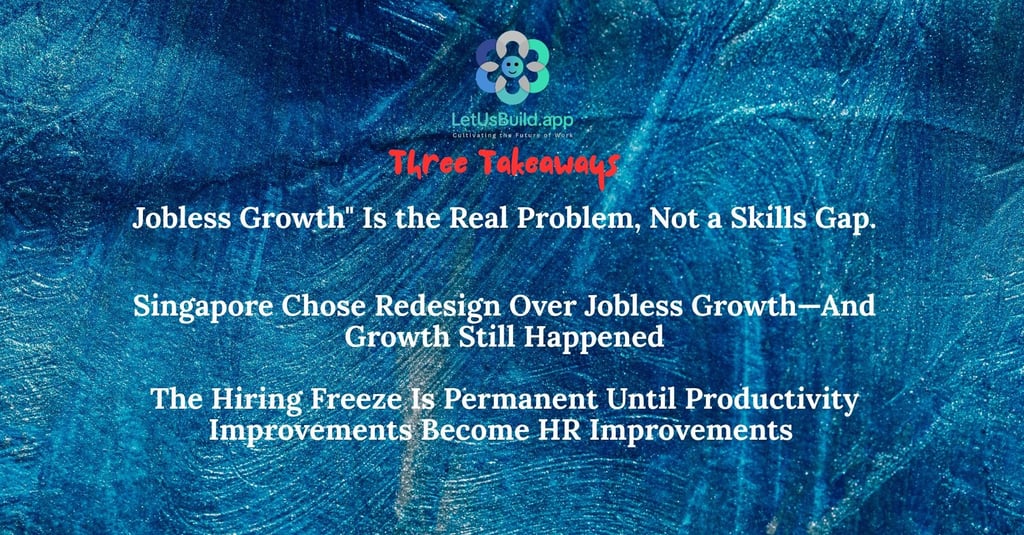 The hiring freeze isn't temporary. It's permanent until productivity improves. And productivity improves through job redesign, skill development, and the kind of systematic workforce transformation that only HR can orchestrate.