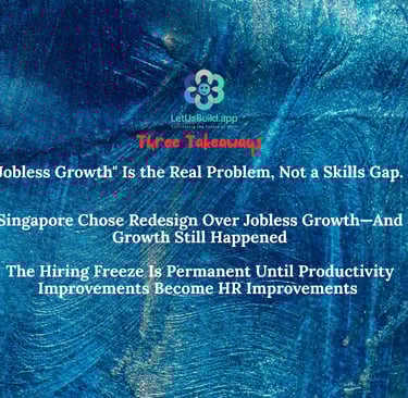 This is Singapore's explicit rejection of jobless growth. While the global economy drifts toward productivity gains that bypass employment, Singapore is betting that deliberate workforce redesign creates a better path: growth that translates into good jobs and better wages.