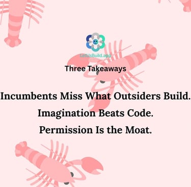 The OpenClaw moment follows this exact trajectory. An outside builder created something valuable using existing tools applied in novel combinations. Incumbents initially viewed it as a threat rather than an opportunity, leading with legal action rather than collaboration. By the time the strategic response arrived, the moment had passed.